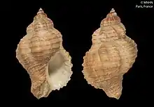 The shell is elongated oval, or short fusiform, longitudinally ribbed or undulated and spirally striated. The aperture has a short siphonal canal. The outer lip is dentate and lirate within. The operculum is somewhat like that of Purpura, semicordate, with the nucleus at the outer edge a little below the middle. Lingual dentition nearly like that of Trophon, the lateral teeth having an elongated base of attachment but the rhachidian tooth has numerous minute denticles between the principal ones, corresponding to ridges on the surface of the tooth, as in the Murices. Ova-capsules are oblong, shouldered, widest near the summit, compressed, carinated on either side peduncle short. The base of the attachment is very small. The aperture is median at the summit.[2]