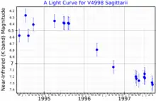 A near-infrared (K band) light curve for V4998 Sagittarii, adapted from Mauerhan et al. (2010)[2]