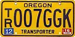 Utility Trailer | c. 1979–83 | Blue on gold; "ORE" and sticker box at top and "TRAILER" at bottom | U123456 | U000001 to approximately U041000 | Issued to trailers having a loaded weight of 8,000 lb or less. |