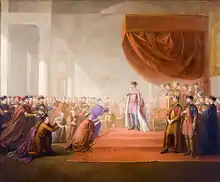 The university flourished. It used Polish as the instructional language, although Russian was added to the curriculum.[35][39] It became known for its studies of Belarusian and Lithuanian culture.[39] By 1823, it was one of the largest in Europe; the student population exceeded that of the Oxford University. A number of students, among them poet Adam Mickiewicz, were arrested in 1823 for conspiracy against the tsar (membership in Filomaci). In 1832, after the November Uprising, the university was closed by Tsar Nicholas I of Russia.