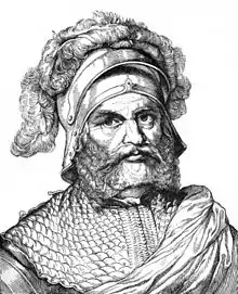 Georg von Frundsberg[lower-alpha 1] (24 September 1473 – 20 August 1528) was a German military and Landsknecht leader in the service of the Holy Roman Empire and Imperial House of Habsburg. An early modern proponent of infantry tactics, he established his reputation in active service during the Italian Wars under Emperor Maximilian I and his successor Charles V. Even in his lifetime, he was referred to as "Vater der Landsknechte" (Father of the Landsknechte) and legends about him as the patriarchal figure of the Landsknechte or his incredible physical strength surfaced.[1][2]