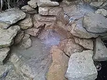 In landscape architecture and garden design, a water feature is one or more items from a range of fountains, jeux d'eau, pools, ponds, rills, artificial waterfalls, and streams. Before the 18th century they were usually powered by gravity, though the famous Hanging Gardens of Babylon are described by Strabo as supplied by an Archimedean screw[1] and other examples were supplied with water using hydraulic rams.