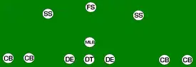 The 6-2 defense consists of six defensive linemen, two linebackers, and three defensive backs (one safety, two corners). This was the primary defense in football, at all levels, during the single wing era (the 1930s), combining enough passing defense to handle the passing attacks of the day along with the ability to handle the power running games of the times.[36][32][37][38] As the T formation grew popular in the 1940s, this formation was replaced in the NFL with the 5-3 and the 5-2 defenses.