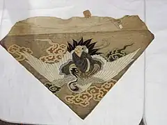Xiangyun (simplified Chinese: 祥云; traditional Chinese: 祥雲; pinyin: xiángyún), are traditional Chinese stylized clouds decorative patterns.[1][2]: 581 [3]: 132 They are also known as yunwen (云纹; 雲紋; 'cloud motif'), auspicious clouds, lucky clouds, and sometimes abbreviated as clouds (云; 雲; yún) in English.[4] A type of xiangyun which was perceived as being especially auspicious is the five-coloured clouds, called qingyun (庆云; 慶雲; qìngyún), which is more commonly known as wuse yun (五色云; 五色雲; wǔsèyún; 'five colour cloud') or wucai xiangyun (五彩祥云; 五彩祥雲; wǔcǎi xiángyún; 'Five-coloured auspicious clouds'), which was perceived as an indicator of a kingdom at peace.[1][2]: 579 [note 1]
