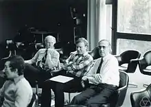![]() Gérard Debreu, Yves Balasko and Edmond Malinvaud at Oberwolfach, circa 1977 | |