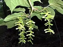 Acer pensylvanicum twigs, leaves, and seed-bearing samaras
