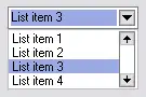 - (graphical user interface) A user interface control GUI element similar to a list box which allows the user to choose one value from a list.