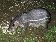 - (Belize) A paca (“a large rodent of the genus Cuniculus native to Central America and South America, which has dark brown or black fur, a white or yellowish underbelly and rows of white spots along the sides”).
